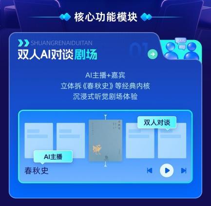 例如,用户可聆听两位虚拟角色对话,在《春秋史》中探讨历史规律与现代启示,在《历代经济变革得失》中剖析制度演变与古今变革,以互动式对谈增强听觉沉浸感,提升知识输入效率。